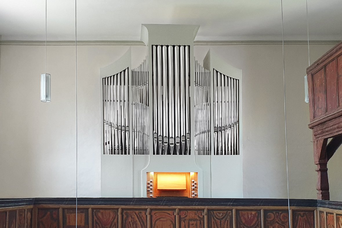 Im Sommer 2024 wurde die Orgel eingeweiht. Ein Instrument, das mit 15 Registern in konzentrierter Form einen großen klanglichen Bogen spannt. Klanglich und technisch ist es inspiriert von Zacharias Hildebrandt und Gottfried Silbermann.